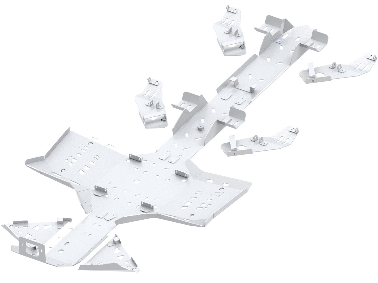 Protects the whole bottom and front part of the chassis and front, middle & rear A-arms.Designed and constructed for best possible protection and to keep the maximum ground clearance, skid plate follows the frame / bodyshape best possible way with high quality TIG welding.Additional, welded front part reinforcement plate.Holes for easier washing and mud draining. Holes on footwell / footrest area follow the oem plastics pattern.Fastening bolts and special protective sinked washers ensuring the repeated assembly when needed, making the servicing of the machine easier and faster.Holes for IB Mid-mount adapter.Holes for oil changing.Compatible with IB front mount adapter.Detailed installation instruction and full mounting hardware included.