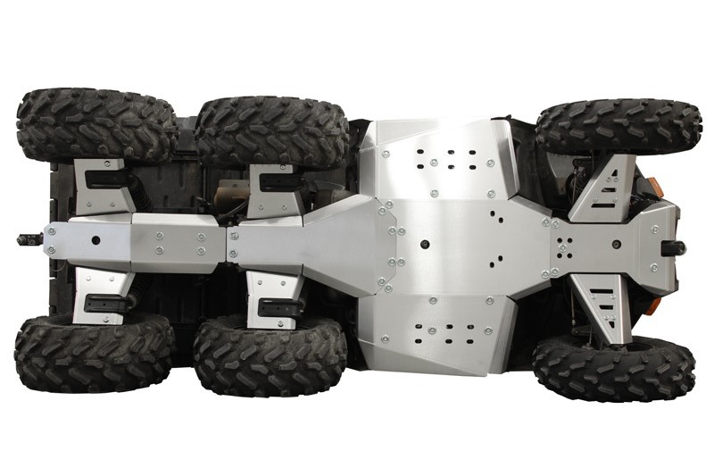 Full protection of bottom and front part of the ATV.Rib shaped openings for mud draining & easier washing.Holes for IB Mid-mount adapter.Holes for oil changing.Detailed installation instruction.Front lower part of the skid plate must be removed in order to use the Polaris OE ‘Glacier III’ snow plow system!