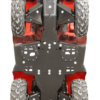 Full protection of bottom and front part of the ATV including front A-arms.Pre-cut sectors for finishing the optional rib shaped holes for mud draining.Holes for oil changing.Holes for IB Mid-mount adapter.Detailed installation instruction.Skid plate kit does not include rear trailing arm guards!