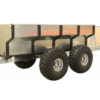 360 degree rotating hitch coupling.Tandem axle with 4 wheels.A load capacity of 1000 kgOff-road tires 22 X 12 – 8’Cargo box with dimensions of 1950 x 1000 x 550 mmComplete user guide & safety instructions included.Packed into transport safe wooden crate.Strong steel frame structure.Optional additional log posts (bolsters) – 2 pairs supplied with the trailer.Optional boat carrier attachment.Optional carrier frame for water tank.Optional crane.Optional electric winch kit for crane.Optional lifting tongs / grapple for crane.Optional luggage container with chainsaw holder.Optional manual winch for crane (max load 725 kg / 1598 lb) with a 10 m / 32.8 ft cable.Optional road grader / scraper attachment.Optional support legs (side supports come with crane option, tow bar support leg available as p/n 61.3000).