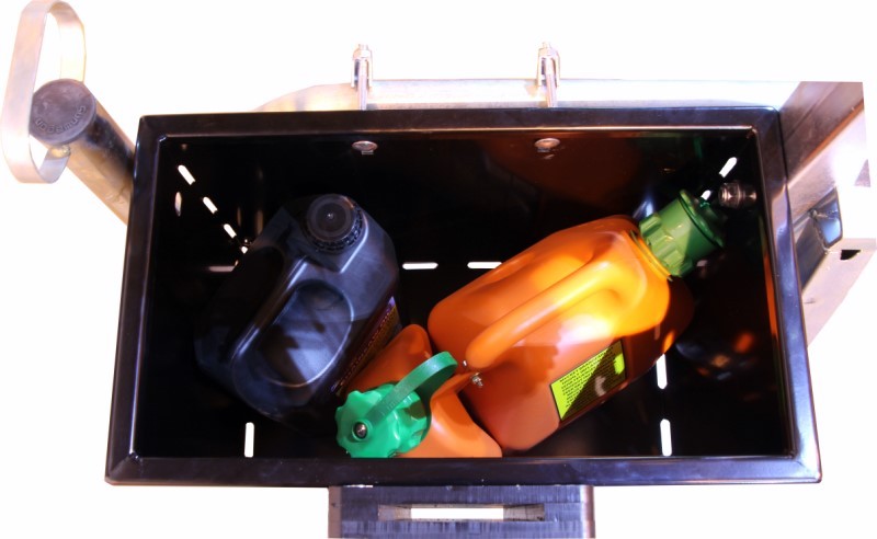 Kit consist of luggage container and universal chainsaw holder.Container is constructed to fit the Husqvarna 6L fuel canister and 5L chain oil canister.Chainsaw holder is made out of plastic with dimensions to fit different bar length chainsaws. Fits the chainsaw bars max 95 x 10 mm size.Container can be fitted on both (left & right) side of the crane, fitted to a protective net.Two containers can be fitted together on the same trailer.Container is constructed to fit on Combo timber trailer but could also be fitted to other applications – other trailers, cargo boxes etc.Mounting hardware and installation manual included.